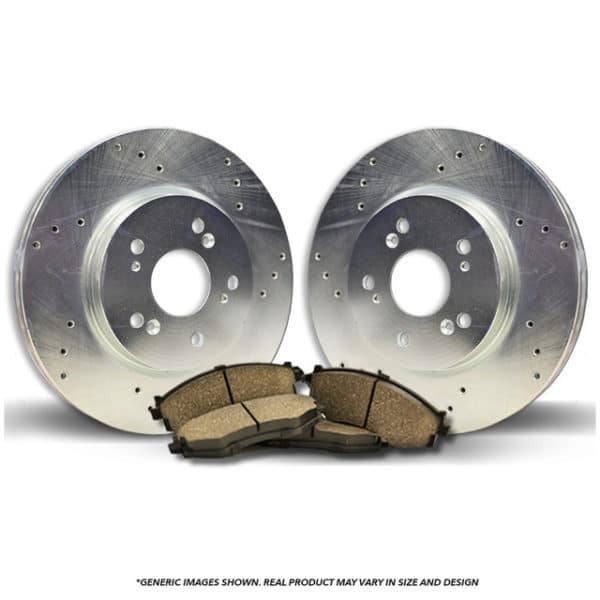 Front Kit | 2 Silver Drilled Anti-Rust Rotors & 4 Ceramic Pads