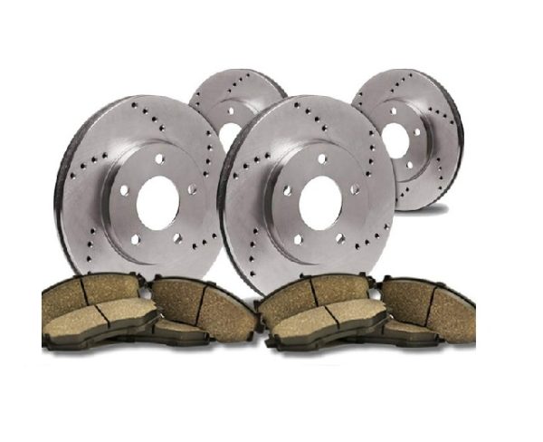 Front Rear Kit | 4 Drilled Rotors & 8 Ceramic Pads